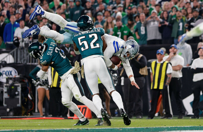Prescott drove Dallas 11 yards seeking a go-ahead touchdown in the last seconds but a sack, incompletion and penalty set up a last-play throw to CeeDee Lamb short of the end zone to give the Eagles a victory that improved their NFL-best mark to 8-1.