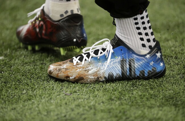 Julio Jones has a special pair of cleats for the occasion, with a picture of the Twin Towers and the words “never forget.”