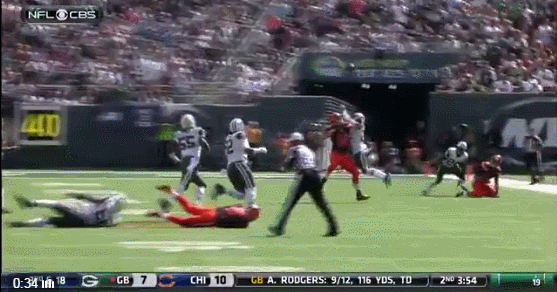 Of course, all the attention in the Browns/Jets game was on the introduction of Johnny Football but one-handed catches are always worth including, especially when you’re kneeling on the ground making it.