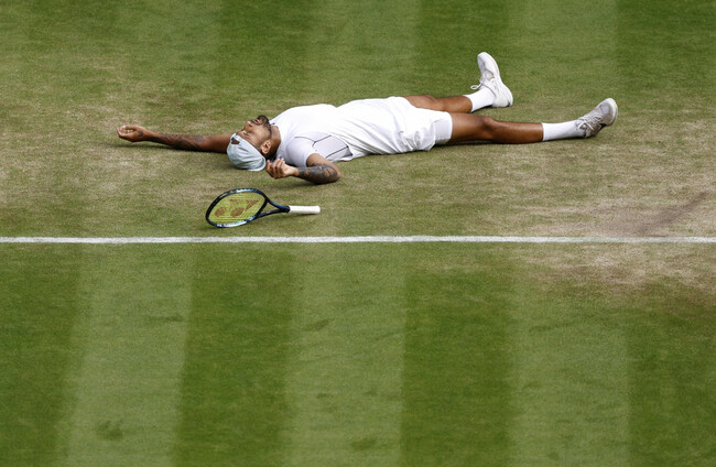 After completing the victory Kyrgios sat in his chair for a couple of minutes soaking in the achievement.