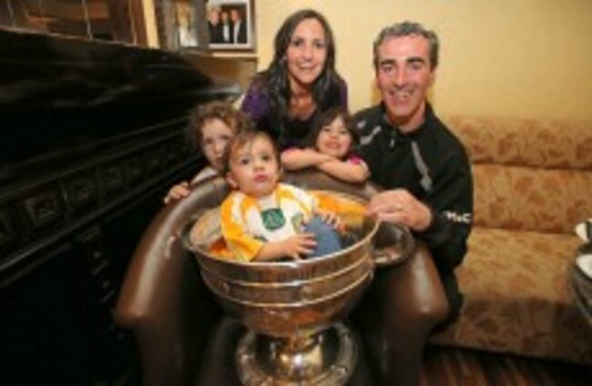Manager Jim McGuinness with his wife Yvonne and kids the morning after Donegal's win last September. INPHO/Cathal Noonan