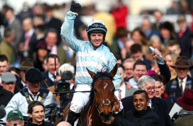 Fehily celebrates the Champion Stayers Hurdle in 2017. Ryan Byrne / INPHO