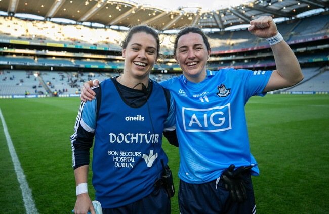 Noelle Healy with Lyndsey Davey after the game. Dublin LGFA.