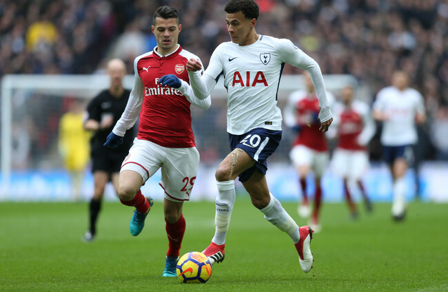 Tottenham Hotspur's Dele Alli and Arsenal's Granit Xhaka. Paul Harding