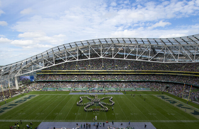 NOTRE DAME WILL host Navy in the Aer Lingus College Football Classic at the Aviva Stadium in August 2023.