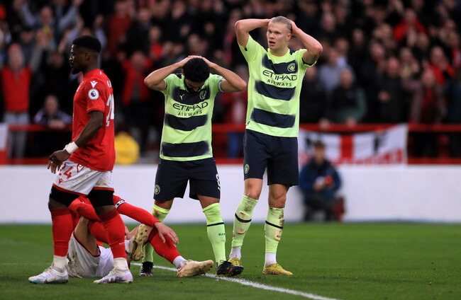 Jack Grealish had a shot blocked and Kevin De Bruyne sent two tame efforts wide as Forest, who threatened on the break with the pace of Brennan Johnson, held firm.