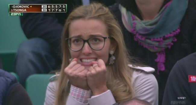 Here she was in the closing moments of Djokovic-Tsonga. That is desire right there.
