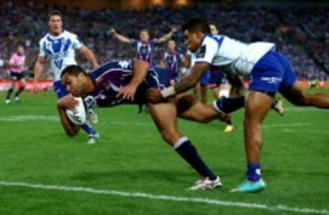 The Bulldogs, who finished top of the regular season standings two points ahead of Melbourne, levelled in the 26th minute when New Zealand winger Sam Perrett swooped on a grubber kick from Krisnan Inu.