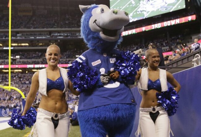 2. #GOOD CAUSE Indianapolis Colts cheerleaders Megan M and Crystal B support head coach Chuck Pagano, who was diagnosed with leukemia in September, by shaving their heads before Sunday’s win over the Buffalo Bills. The pair raised $22,000 for leukemia research.