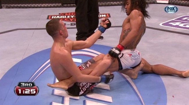 2. #FLIPPING THE BIRD Nate Diaz was in the middle of his UFC fight with Benson Henderson when Fox cut away momentarily to footage of an empty octagon. It turns out the trash-talking American had given his opponent the middle finger as the pair were locked together on the ground.