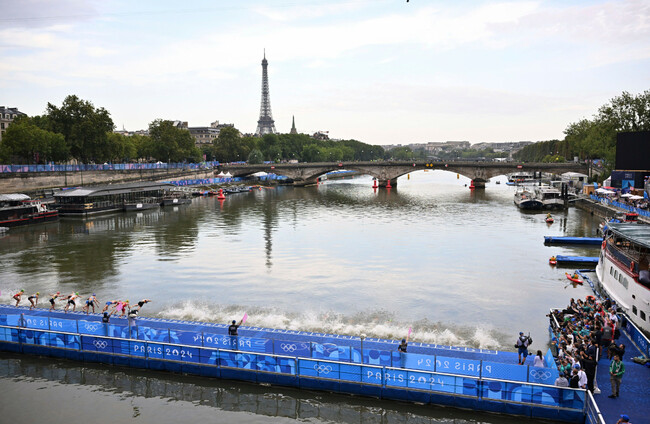 The women triathletes dived into the Seine at the historic Alexandre III bridge in the heart of the City of Light before a cycling stage around Paris and then a running stage.