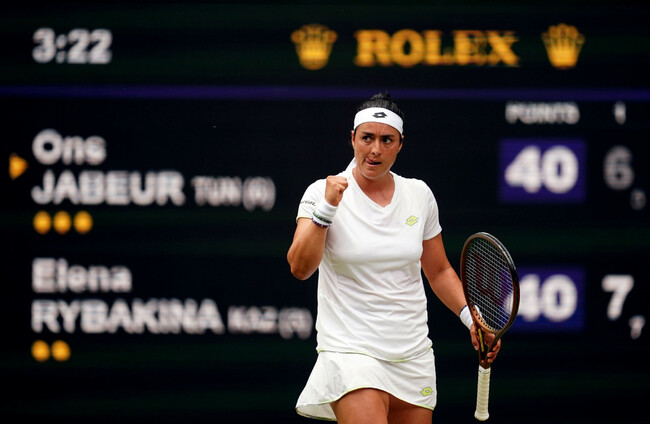 This time around it was Rybakina who made the first move with a break to lead 3-1 but Jabeur hit back immediately, breaking back to love.