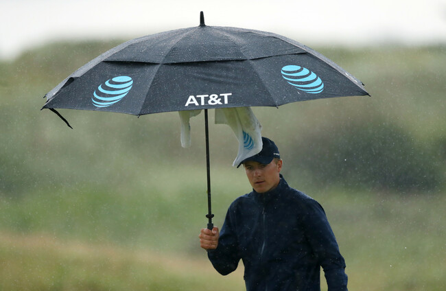 Brooks Koepka had been level with Spieth and Kuchar overnight but the current US Open champion struggled a little more in the afternoon rain — which at one point forced a temporary halt to play as greens became waterlogged.