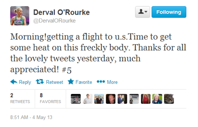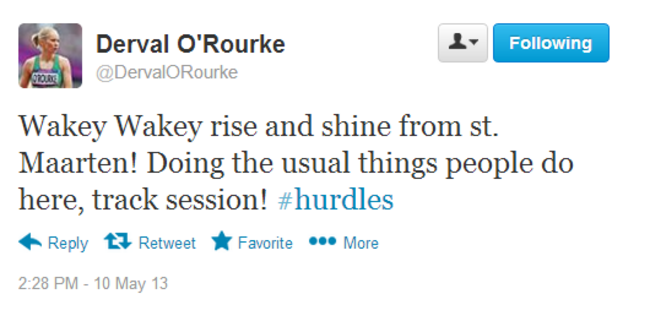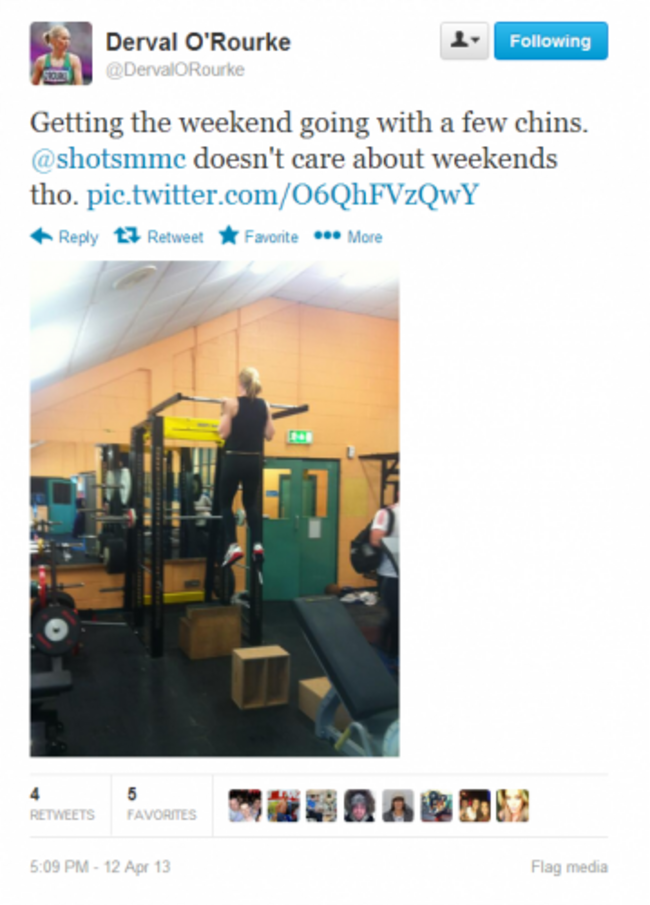 WE’RE NEVER SHORT of being impressed when Derval O’Rourke tweets details of her training regime. And the images usually make us wince.