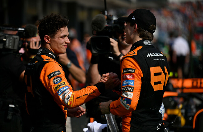 Norris slowed down on the main straight with three laps remaining to allow Piastri to take the lead.