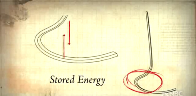 When the runner’s foot hits the ground, the blade compresses like a spring, storing potential energy.