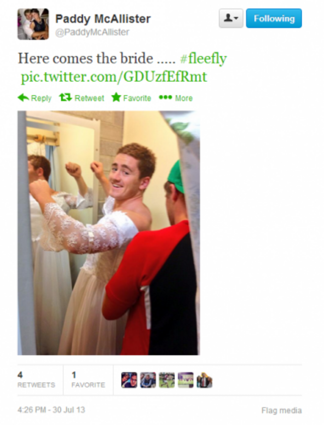 #FleeFly just got real: Paddy Jackson is wearing a wedding dress