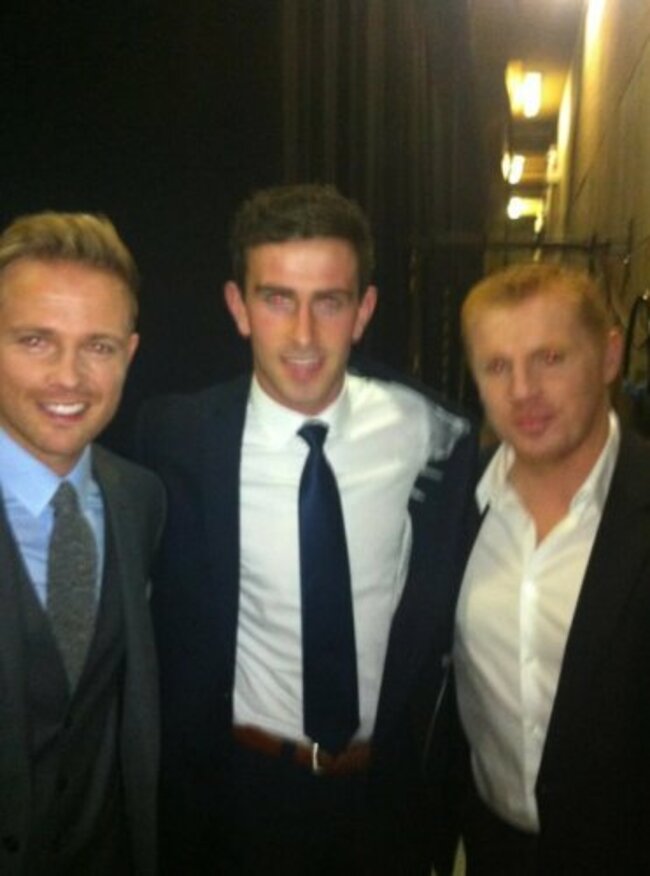 McBrearty alonside Neil Lennon and Nicky Byrne. Credit: donegaldaily.com