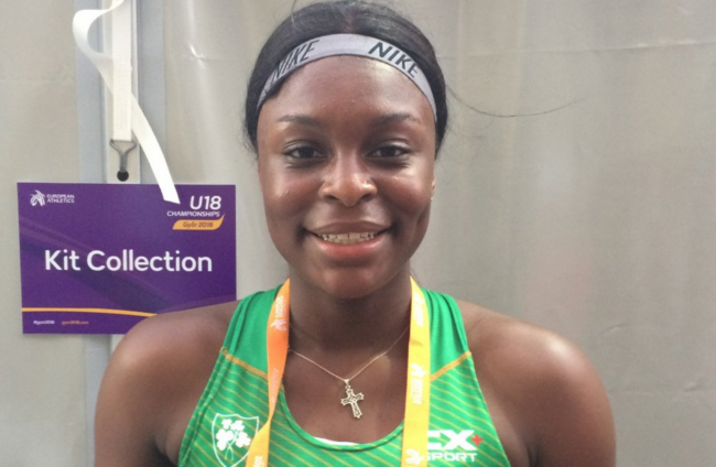 The St Gerard’s Dundalk athlete coasted through this morning’s heats in Gyor before smashing a championship record in her semi-final, clocking a time of 11.59 seconds into a wind of +0.7m/s.