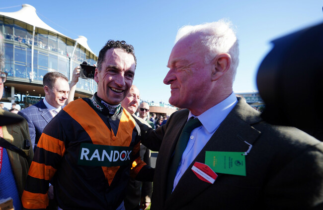 “You couldn’t write the script today, four of the first five. When Patrick was born, I said if he gets one or two rides in the National he’s done well,” said Mullins, who was emulating Ted Walsh and Tommy Carberry in winning with the National with his son.