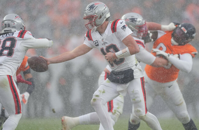 But disaster struck, as he fumbled on the Broncos’ 14-yard line for a turnover. Maye, who had been struggling badly, rushed for a touchdown and a 7-7 half-time score.