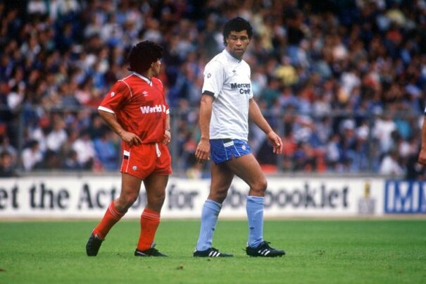 Man-marking Diego Maradona as part of a Football League XI against the Rest of the World