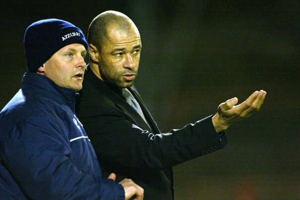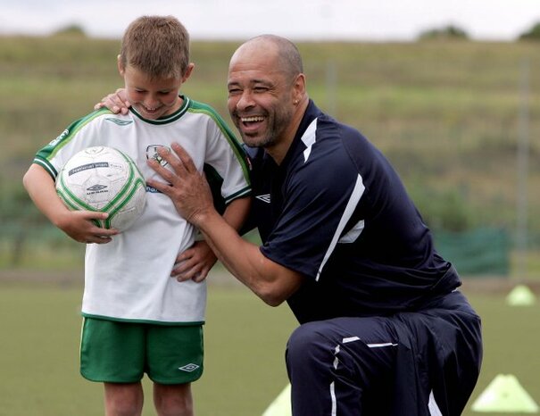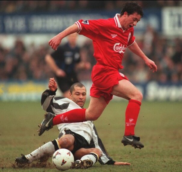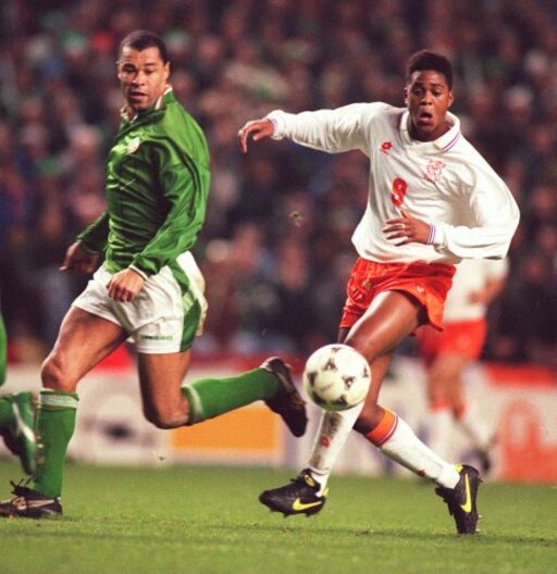 A young Patrick Kluivert gets away from him during the Euro '96 play-off at Anfield
