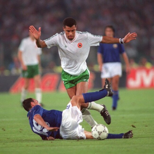 Paul McGrath and Salvatore Schillaci in Rome in 1990. INPHO/Billy Stickland