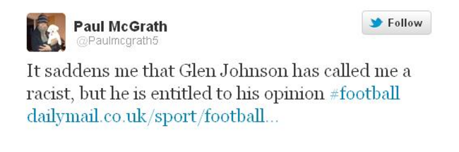 ‘If I was in Glen Johnson’s position, I would have thrown the shirt to the floor,’ said McGrath at the time. Johnson, however, insists he’s ‘his own man’ and McGrath was wrong to critisise his actions.