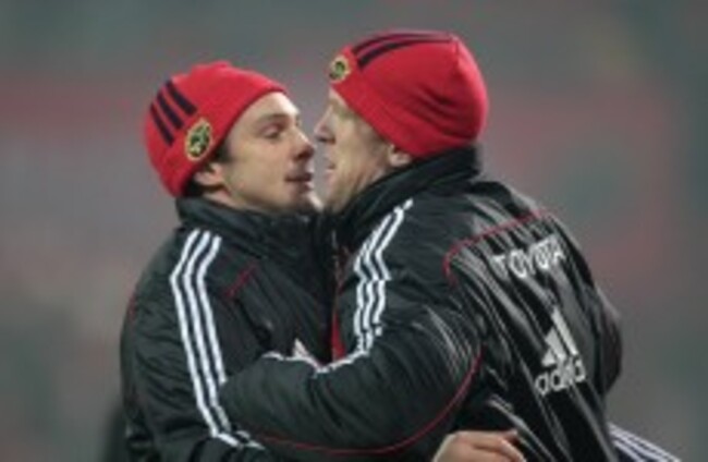 David Wallace and Paul O'Connell warm-up before a Magners League match in 2010. INPHO/Morgan Treacy