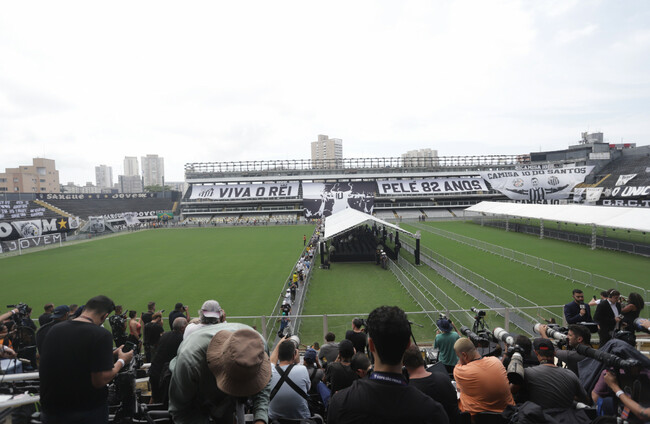 On Monday, his coffin was placed on the centre circle of the Urbano Caldeira stadium in Sao Paulo, ahead of a private burial on Tuesday.