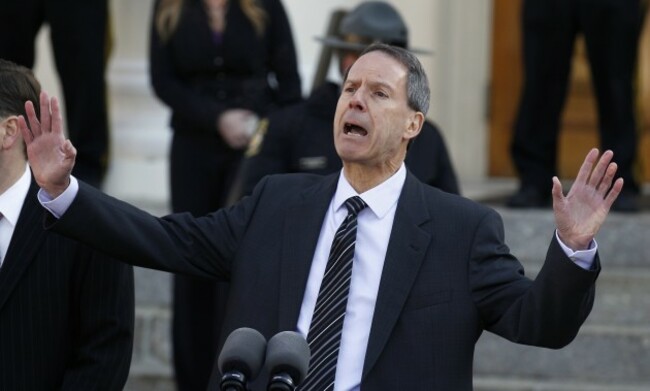 Attorney Joe Amendola speaks outside the Centre County Courthouse in Bellefonte, Pa, today after his client, former Penn State assistant football coach Jerry Sandusky, waived his preliminary hearing on charges of sexually abusing boys. (AP Photo/Alex Brandon)