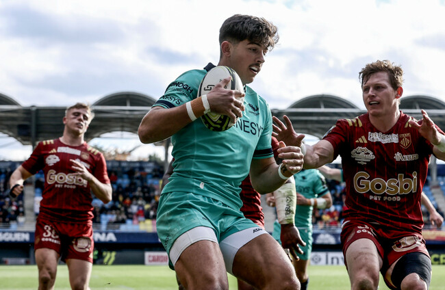 However, Connacht defended superbly and countered from deep through Cordero and Hawkshaw. The latter burst towards the left edge and delivered a perfect right-footed kick into space, with Perpignan conceding the lineout deep inside their own territory.