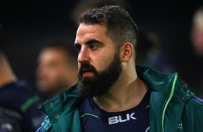 McCabe leaving the field injured for Connacht during their Challenge Cup quarter-final away to Sale Sharks in 2019. James Crombie / INPHO