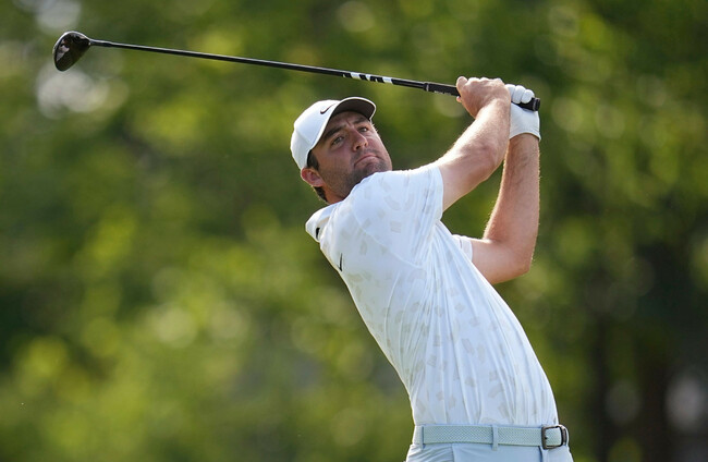 Scottie Scheffler watches his shot from the 18th tee. Sue Ogrocki/AP