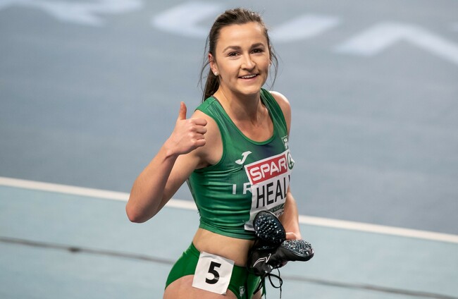 PHIL HEALY HAS made a glittering start at the European Indoor Championships in Torun, Poland, winning her 400m heat and powering into tonight’s semi-final.