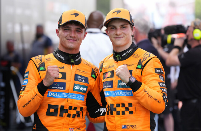 Norris started second and finished in the same position – despite losing out to Red Bull’s Max Verstappen off the line – taking the chequered flag 2.4 seconds behind Piastri.