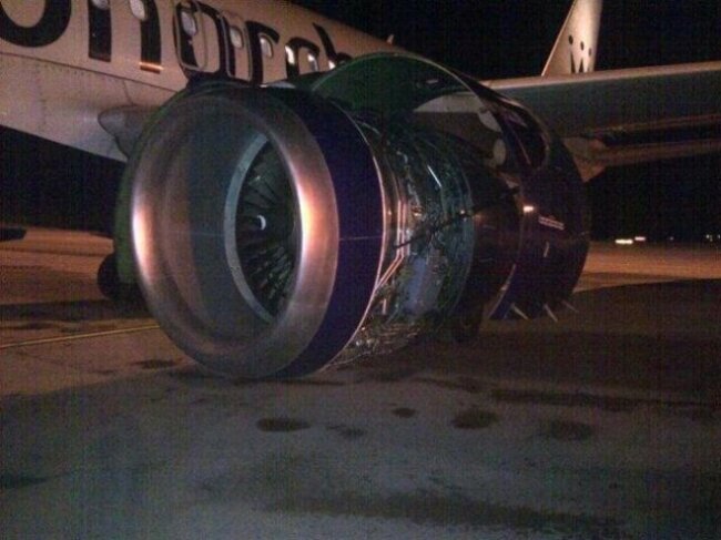 Now, we’re no experts in aerodynamics, but we’re fairly certain that when an engine becomes divorced from its wing, it might be better to come back tomorrow.