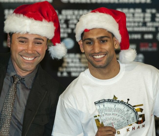 Khan and Oscar de la Hoya. Damian Dovarganes/AP/Press Association Images