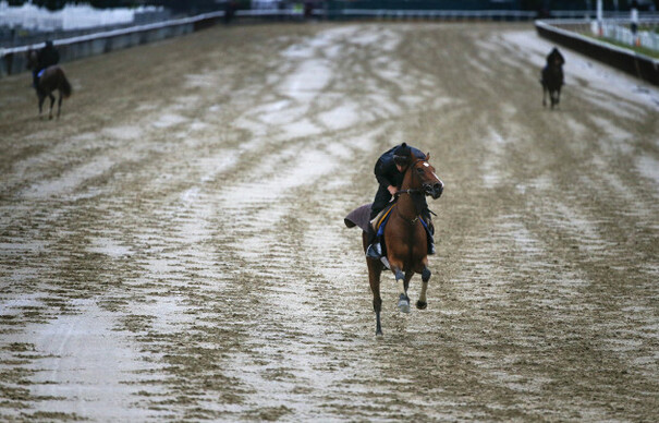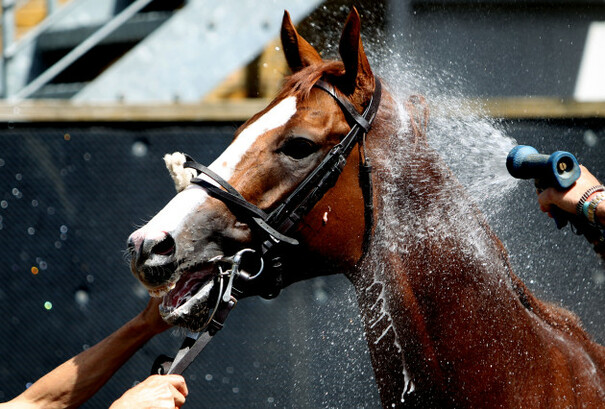 California Chrome after the workout at Ascot Racecourse, Berkshire.