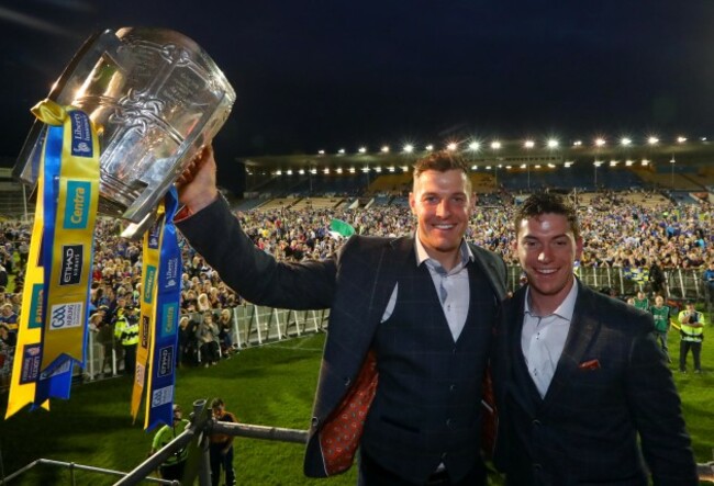 Two of the deadliest forwards in the game, Seamus Callanan (left) and John ‘Bubbles’ O’Dwyer, pictured here with Liam MacCarthy…
