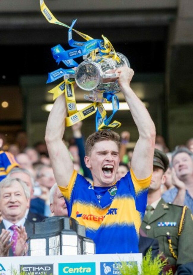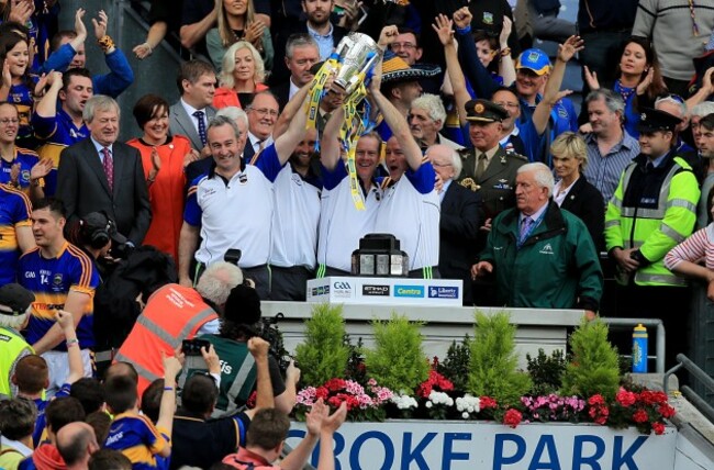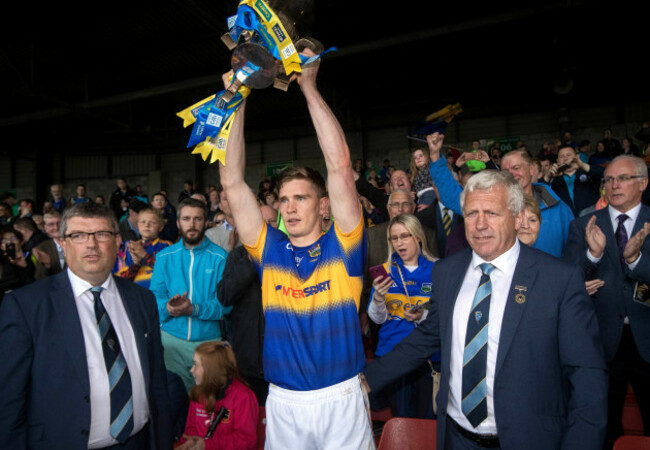 Things couldn’t have gone much better for Tipperary on Munster final Sunday. First off, their minors decimated Limerick to win the provincial crown. Brian McGrath (on-field captain) and Gavin Ryan (injured skipper) lift the trophy.
