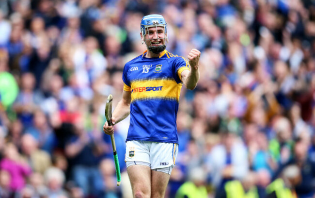 Tipp had that winning feeling at full-time and here, elation is etched all over Pádraic Maher’s face as he celebrates with team-mate and Thurles Sarsfields colleague Michael Cahill.