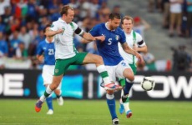 Keith Andrews -7: Less than touch-tight to Cassano when the 35th minute corner was whipped in, but other than that he was Ireland’s best player. Showed he is dangerous from distance and forced rare saves from Gigi Buffon. Grew in stature until receiving his late red card and will be desperately unfortunate if he is not a Premier league player next season.
