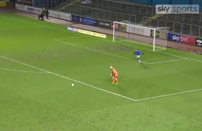 League Two keeper gets ruined as opponent sneaks up from behind to score cheeky goal