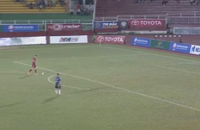 In footage which has gone viral, Nguyen Minh Nhut turned his back to let in the penalty, which was given in the dying moments with the scores at 2-2, and then somersaulted over the ball to concede again from the restart.