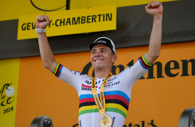 Evenepoel was powering ahead to a wider margin of victory before his gears stuck, a problem he solved by bouncing hard on his seat, testimony to his cool despite this being his first Grand Boucle.