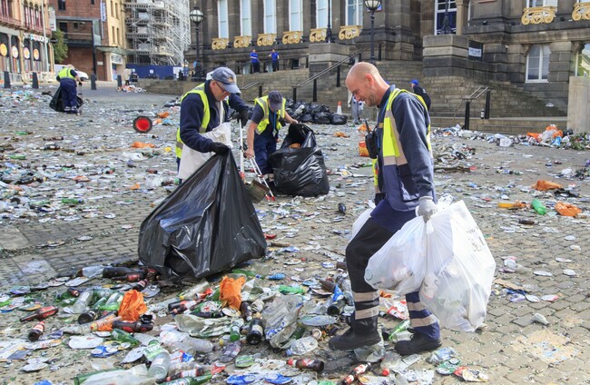 Millennium Square was left strewn with discarded rubbish and broken glass and a large-scale clear-up operation began this morning.