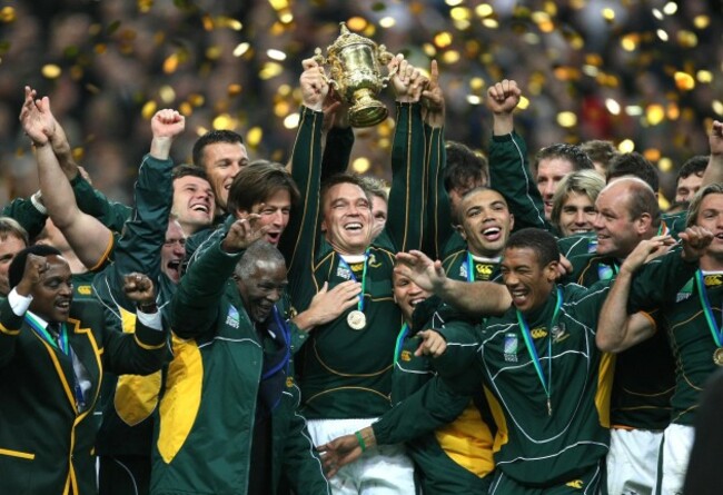 There are few moments in sporting history as poignant as when South African captain François Pienaar received the Webb Ellis Trophy from new President Nelson Mandela.