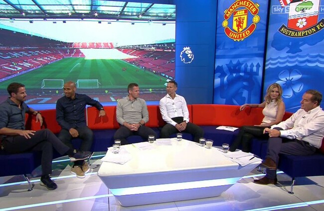 Jeff Stelling and Rachel Riley are joined by Ryan Giggs, Jamie Carragher, Thierry Henry and Jamie Redknapp in tonight's Friday Night Football on Sky Sports. Twitter/SkySportsFootball